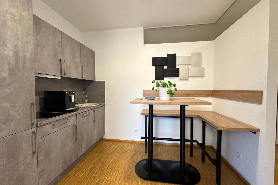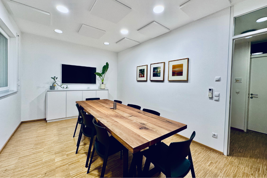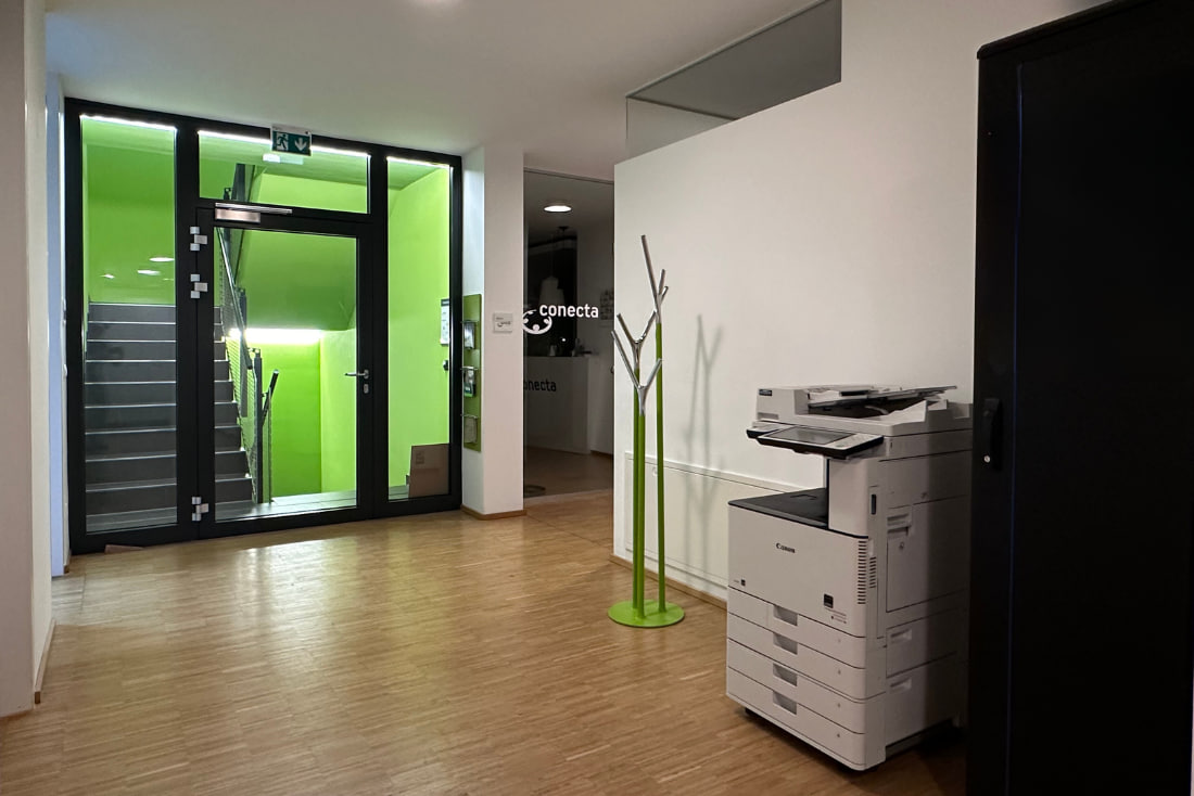 Objektbeschreibung - Große und geräumige Bürofläche mit viel Licht, Wlan, moderner Drucker zur allgemeinen Verwendung, WC Anlagen, 2 Besprechungsräume zur allgemeinen Verwendung, möblierte Küche mit Kochinsel und Kühlschrank, Balkon, Briefkasten, Besucherparkplätzen.